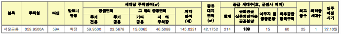 전체 294호의 건설 호수 중 139호가 신혼희망타운으로 공급됩니다. 나머지 호수는 이주자 등 공공분양 15호, 군관사 80호, 행복주택 60호로 공급됩니다.