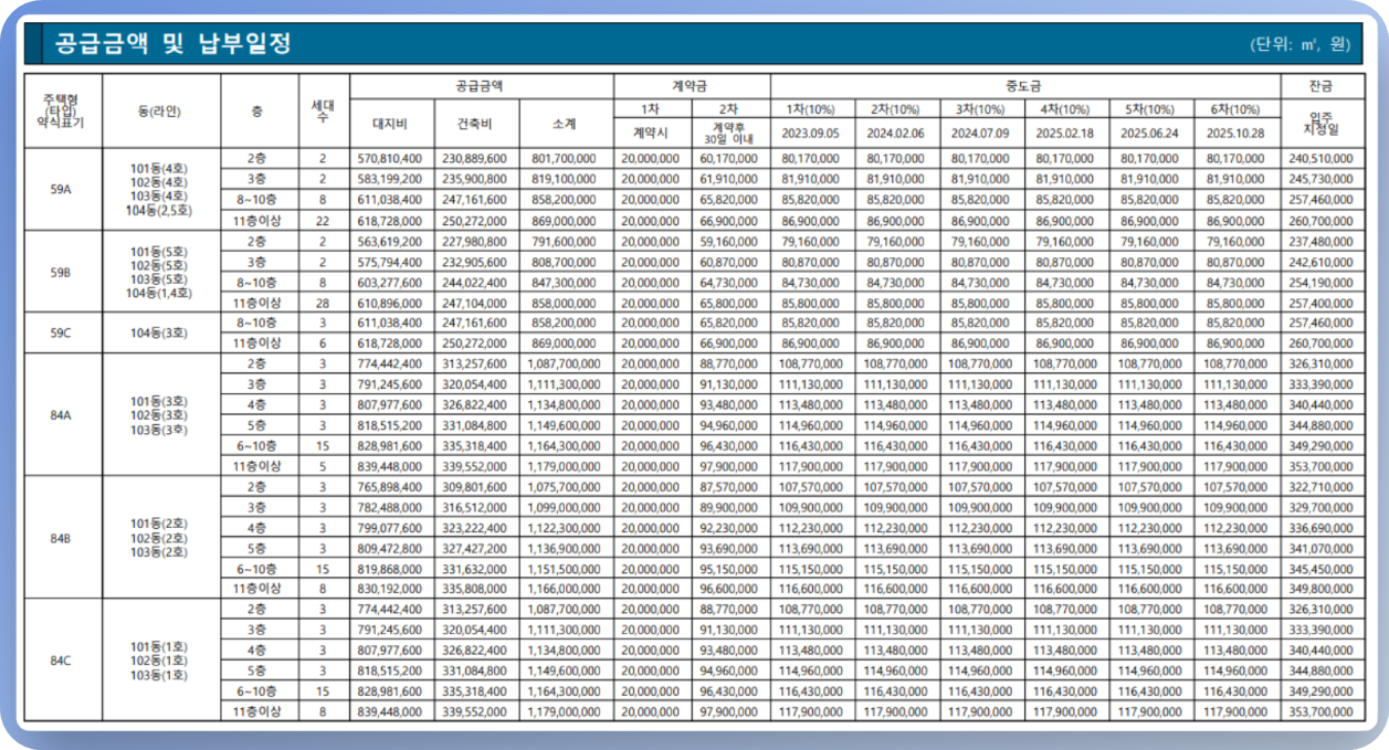 이번에는 중요한 분양가를 확인해 보겠습니다.