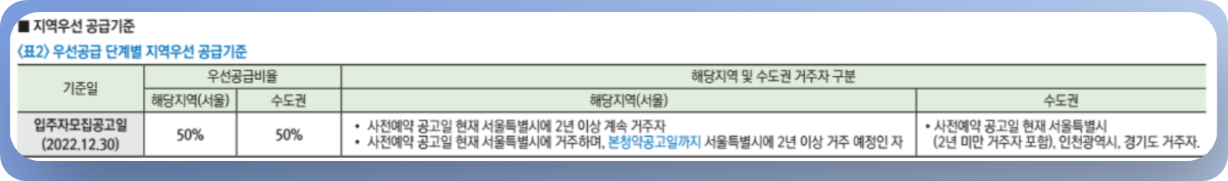 동일순위 내 경쟁 시 해당지역에 거주하고 있는 자에게 우선공급 비율만큼 우선공급하며, 해당지역 거주자 신청 결과 미달된 물량은 수도권 거주자에게 공급합니다.