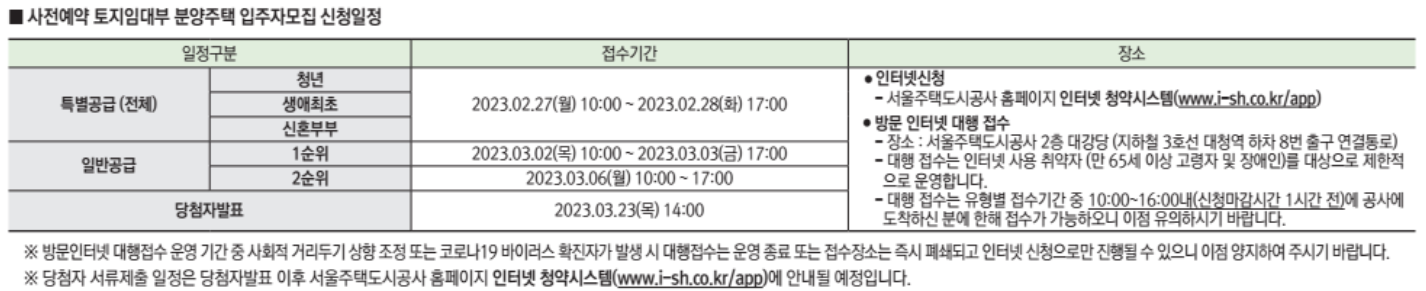 사전예약은 LH에서 말하는 사전청약과 동일합니다. 단지 SH에서는 사전예약이라고 부르고 있을 뿐이죠.