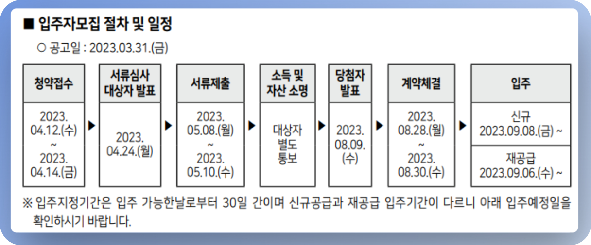 입주자 모집 공고일은 23년 3월 31일(금)입니다.